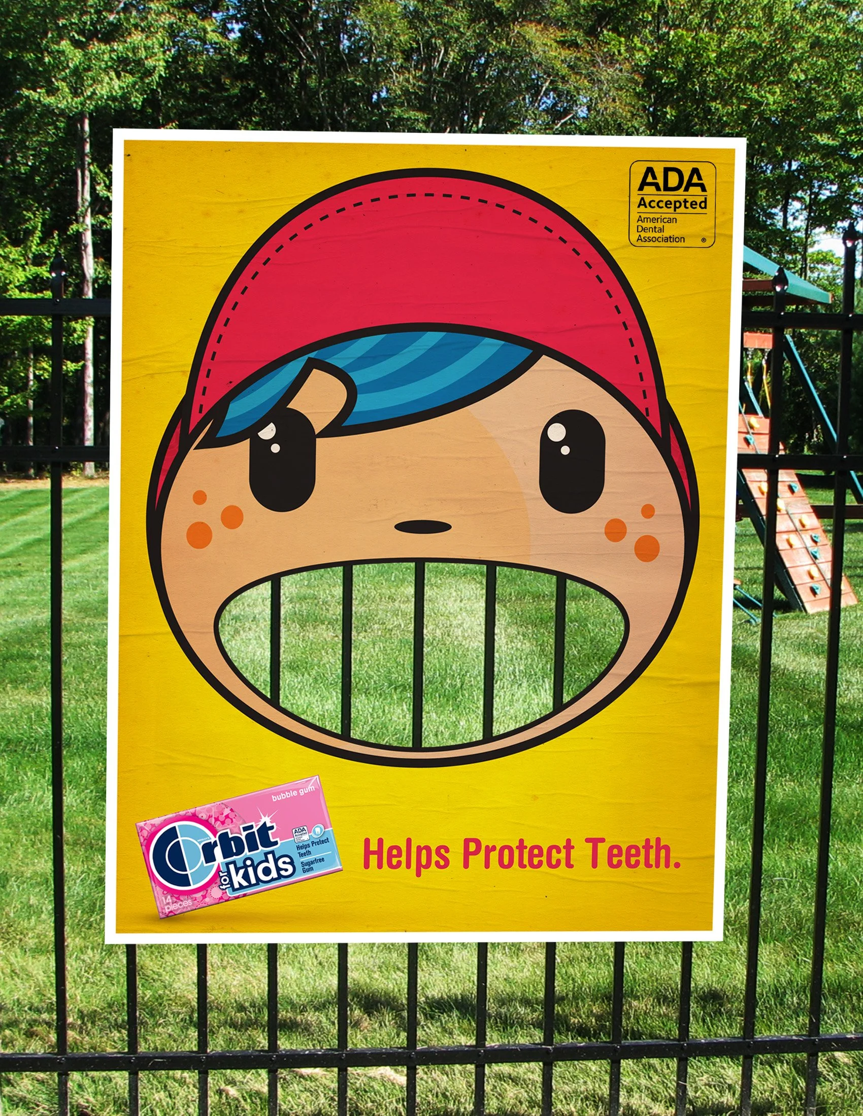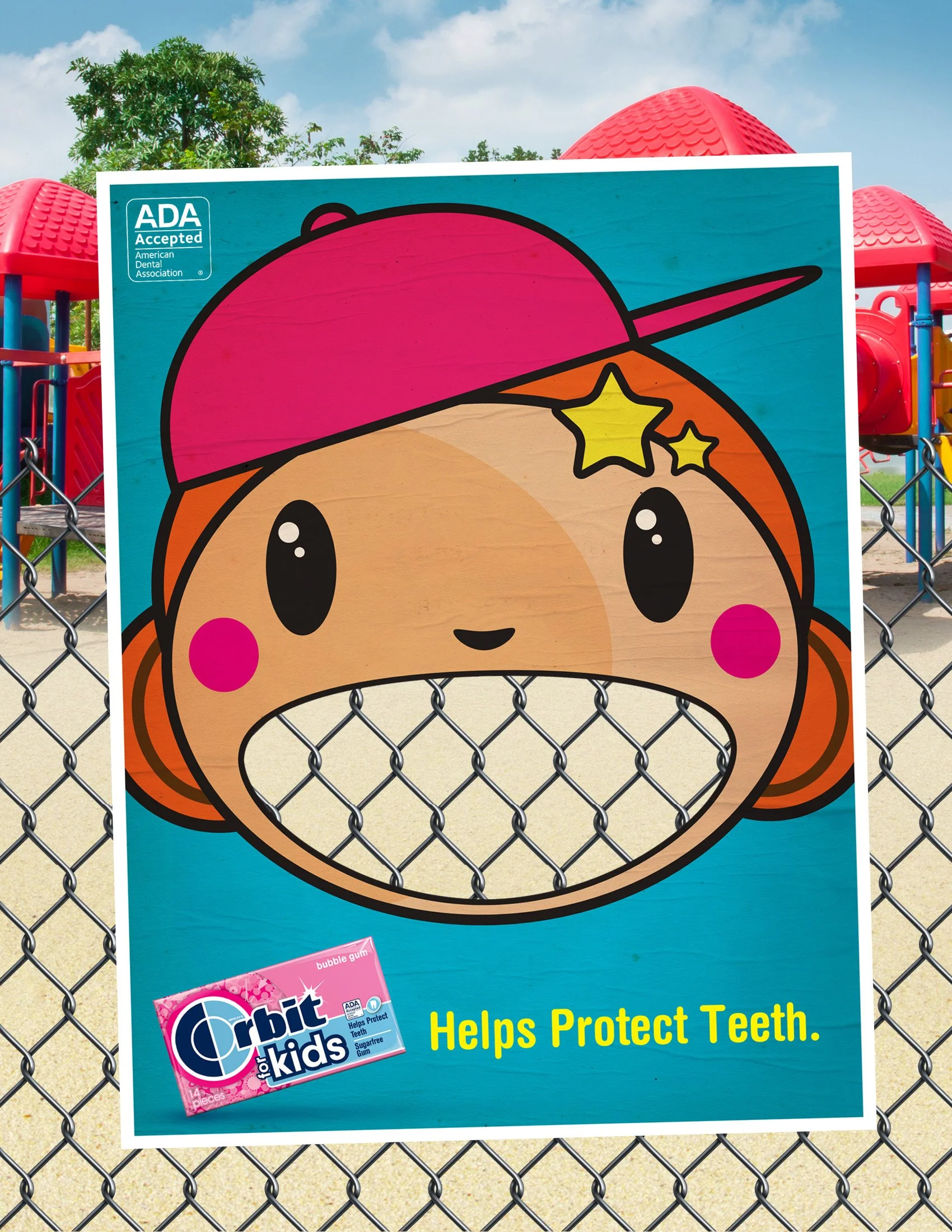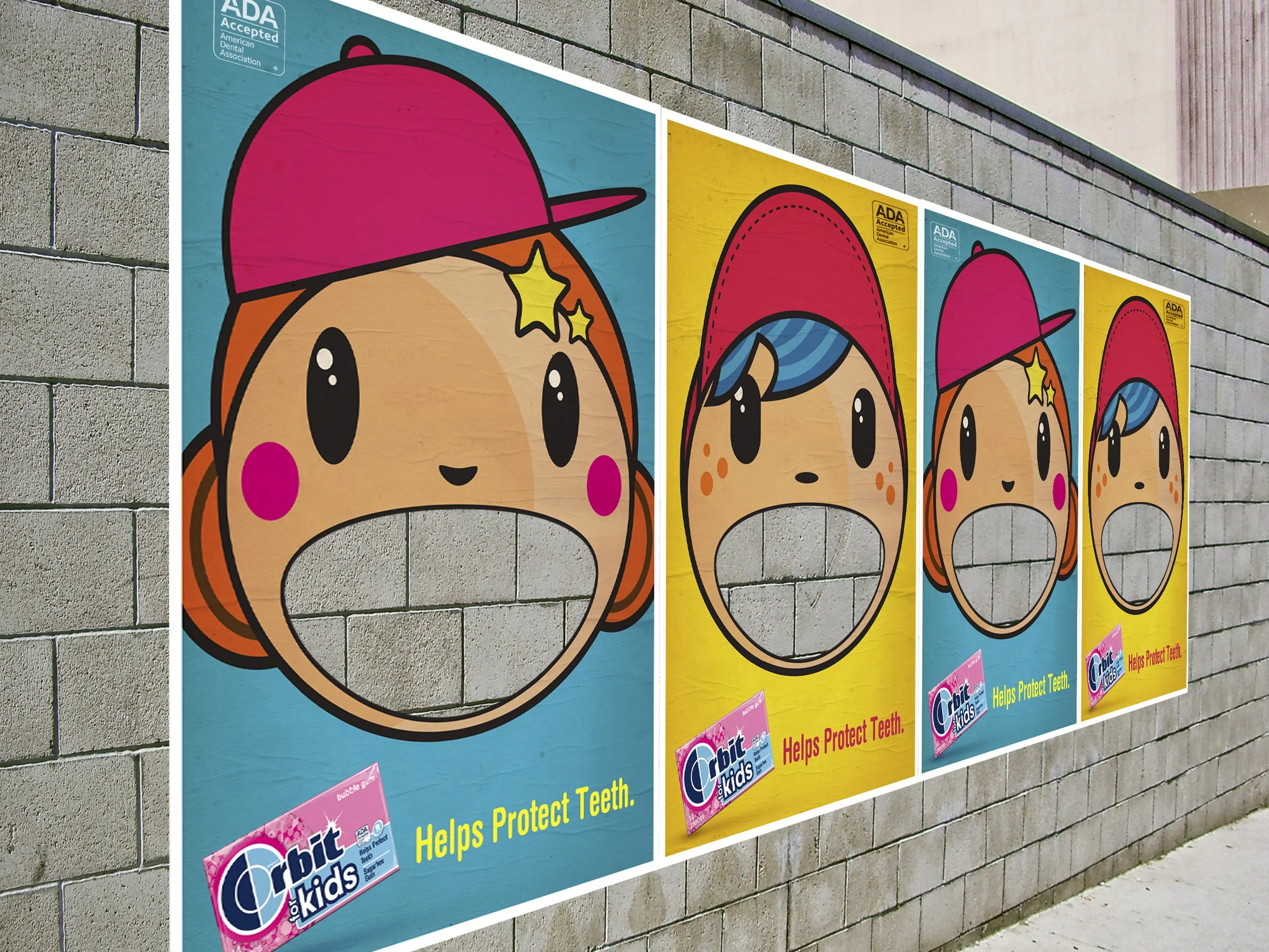 Orbit For Kids ensures your smile stays shielded. Imagine safeguarding your smile like fortifying a castle. In this striking visual, vibrant illustrations of faces feature mouths replaced by symbols of robust protection—a fence, a wall, and more. It's a straightforward yet impactful message.